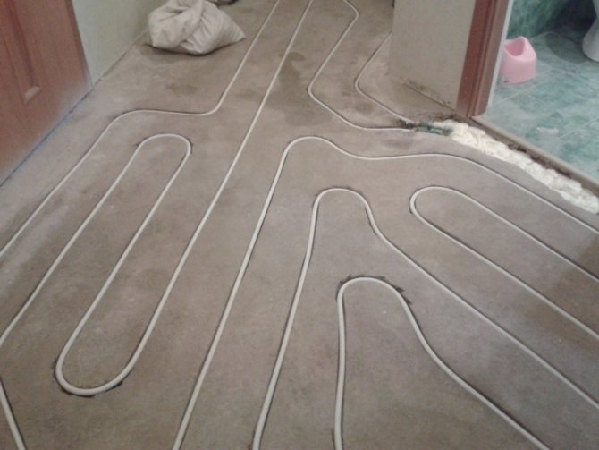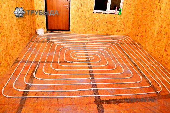 Преди да започнете да полагате отоплителните тръби в подовата замазка, трябва да се обърне внимание на изолационния слой. Подът в помещенията, разположени непосредствено над студените мазета, трябва да бъде допълнен с изолационни панели, в противен случай част от топлината, отдавана от отоплителните тръби, ще бъде погълната от подовата плоча и няма да се влее в помещението, за което всичко е подредено за отопление.