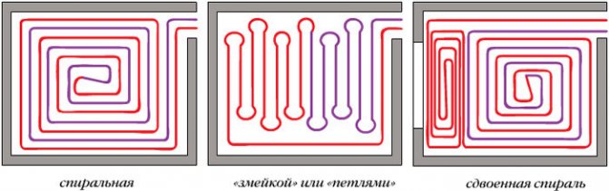 За да се осигури равномерно отопление, е необходимо да се гарантира, че подовото отопление в помещението е подредено под формата на змия или спирала със същото разстояние между зигзаговете или завоите.