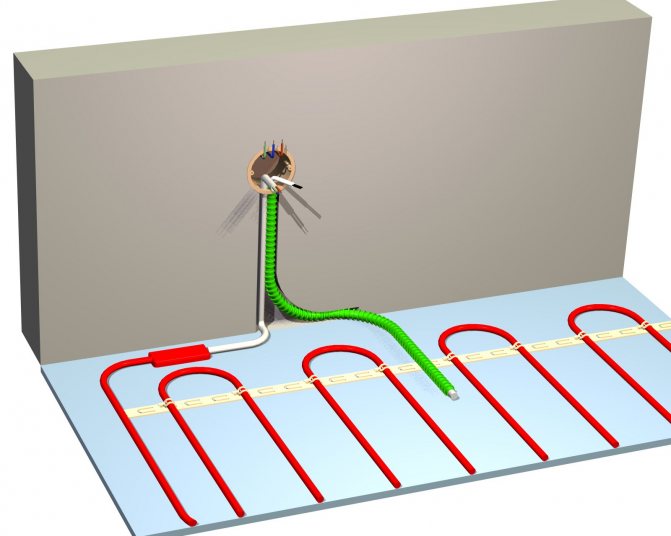 - Кабелът може да бъде повреден след полагането му, преди изливане на замазката, докато ходите по нея, премествайки оборудване, материали, инструменти, следователно, непосредствено преди изливането на замазката, те също проверяват работата на системата.