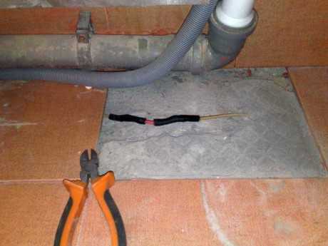 - Честа причина за повреда на кабела е използването на шпатула или шлайф при съединяване на фуги в процеса на полагане на подови плочки, когато е необходимо да се отстрани излишното втвърдено лепило в процепите между плочките. Често кабелът се полага директно в лепилото за плочки, така че е доста лесно да го повредите.