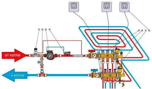 Специфичността на монтажа на оборудването се крие в това колко правилно е положен водната верига и как тръбопроводът е правилно свързан към отоплителната система. Липсата на правилни хидравлични изчисления, неправилно регулиране на смесителния блок водят до факта, че отоплителният под започва да се влива в тръбопровода периодично или температурата му е значително по-ниска от необходимата.