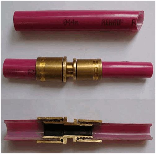 Например: инсталирането на водна верига от омрежени полиетиленови тръби е най-често срещаната и достъпна опция за полагане на воден под. Понякога обаче трябва да платите за евтиността на консумативите по време на работа. При най-малките механични повреди тръбата губи целостта си. Можете да разрешите проблема, като инсталирате фитинг. Мястото за монтаж на фитинга трябва да бъде отбелязано на схематичния план или на мястото на монтаж на шкафа на колектора.