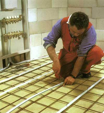 Тръбата за подово отопление трябва вече да е разточена и свързана към колектора.