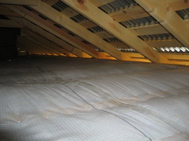 Поставяме пароизолационен слой върху грубите дъски и поставяме топлоизолация върху него.
