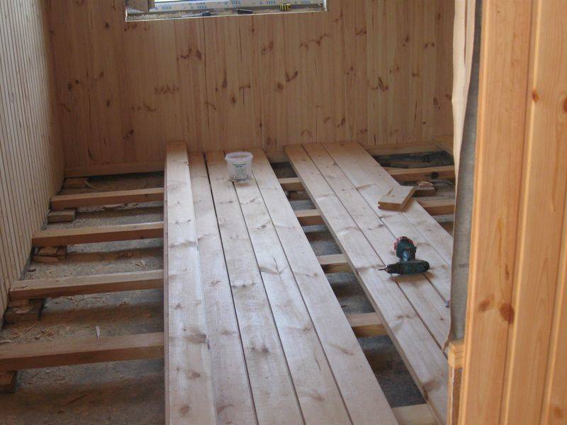 - Сега можете да инсталирате подовата настилка. За да направите това, можете да използвате стари дъски, ако са в добро състояние, или да поставите нови.