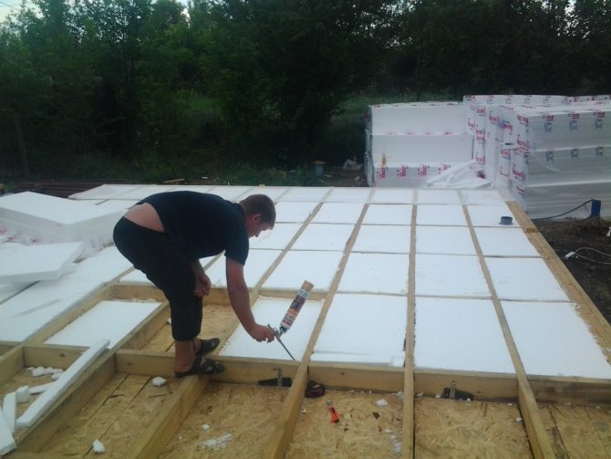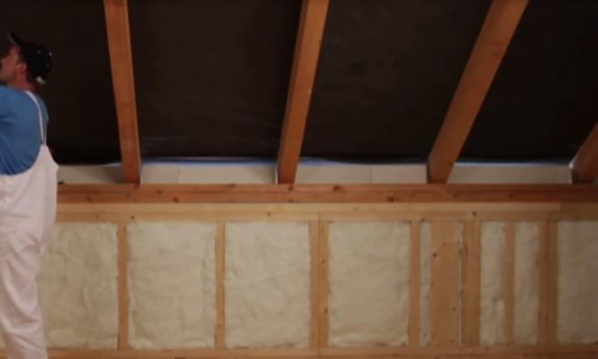 - Поставяне на изолация между изоставанията. Експертите препоръчват да се постави изолацията възможно най-плътно. Всички празнини са запечатани с уплътнител или пяна;