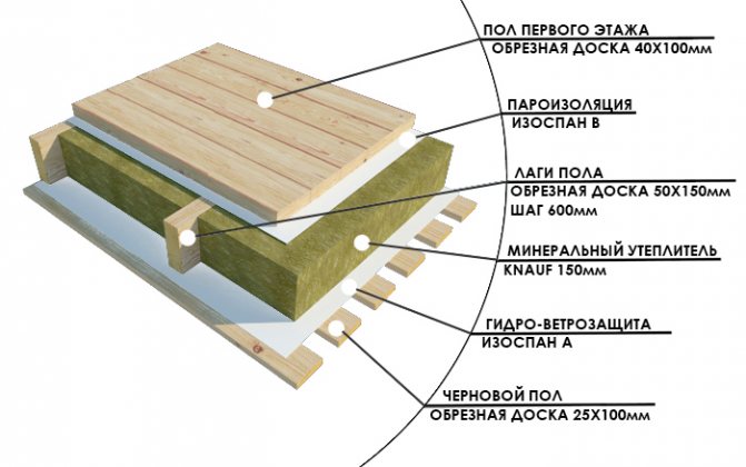 За сутеренното покритие е необходим топлоизолационен материал с дебелина най-малко 200 ml, таванският под е изолиран със слой от 250 mm, а междуетажният не е по-малък от 150 mm.