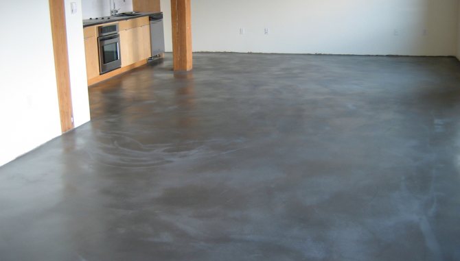 Два дни по-късно бетонът се глади със смес (10: 1) вода с течно стъкло и сух цимент. Правят го така: навлажнете цялата повърхност на замазката с валяк или пистолет за пръскане, след това я поръсете с тънък слой сух цимент и я втрийте с плувка в бетона. Такава техника ще увеличи якостта на бетона с порядък и ще увеличи устойчивостта му на вода. За пълното узряване на замазката са необходими поне 1,5 месеца, но последваща работа може да се извърши след 1-2 седмици.