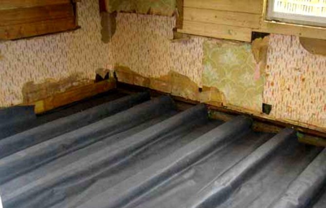 - За под с изолация към долната част на трупа са прикрепени пръти с размери 30x50 или 50x50 mm, върху които е положен груб под от тънка необрязана дъска с дебелина 20 mm.