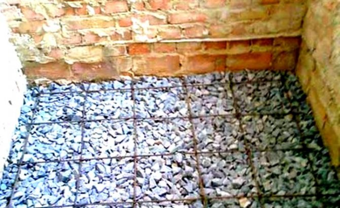- Бетонната основа под тухлените стълбове се излива така, че да излиза на 5 см над нивото на уплътнената почва. За това се монтира кофраж от дъски (около 5 см височина над земята) и армировка в ямите. Като армировка можете да използвате тел или мрежа с клетки 10х10 см.