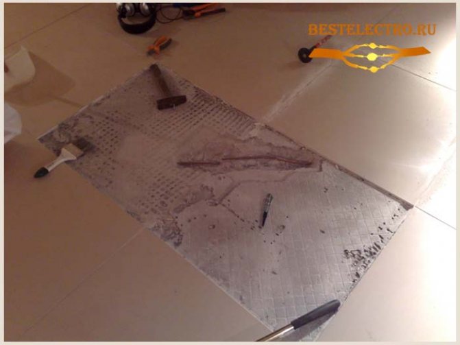 Случва се така, че когато инсталирате филмова конструкция, изливате бетон или монтирате плочки, можете да пробиете жиците на топъл под. Разбира се, невъзможно е да забележите това веднага, но повредата ще се прояви, когато системата бъде включена. Тогава ще бъде забележимо, че филмовият топъл под не се нагрява. Първата стъпка е да се определи точно къде е възникнала повредата. Ако беше възможно да се определи, че нагревателният кабел е счупен, тогава си струва да се намери мястото на повреда. Премахването на линолеум или ламиниран паркет няма да представлява проблем. Ще бъде много по-трудно да демонтирате плочките. След отваряне на горното покритие, като правило, няма да се вижда разбивка. След това трябва да отрежете кабела. Това ще създаде зона на звънене. След като определите разбивката, трябва да свържете всички разфасовки и повреди с съединители.