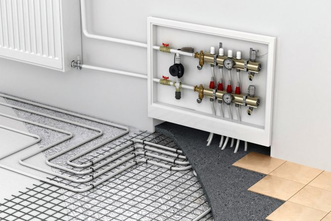 Така че, ако контурът за подово отопление не работи за вас, трябва да видите в разпределителната кутия всички сферични кранове за всяка верига, които трябва да бъдат отворени, т.е. разположени по протежение на тръбопроводите.