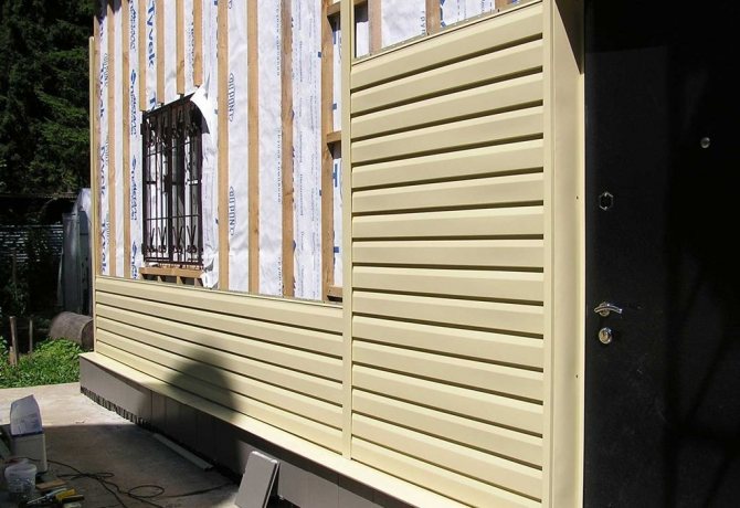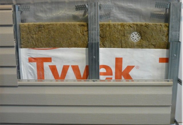 Същият проблем възниква и при стените. Въпреки факта, че сайдинг панелите са монтирани с припокриване, в случай на силен вятър, дъждовната вода все още попада под облицовката през пукнатините. Ако има хидроизолация, влагата тече надолу, без да уврежда конструкцията. Следователно външната декорация на сградата изисква вентилационна междина от 20-30 мм за полагане на изолационния материал.