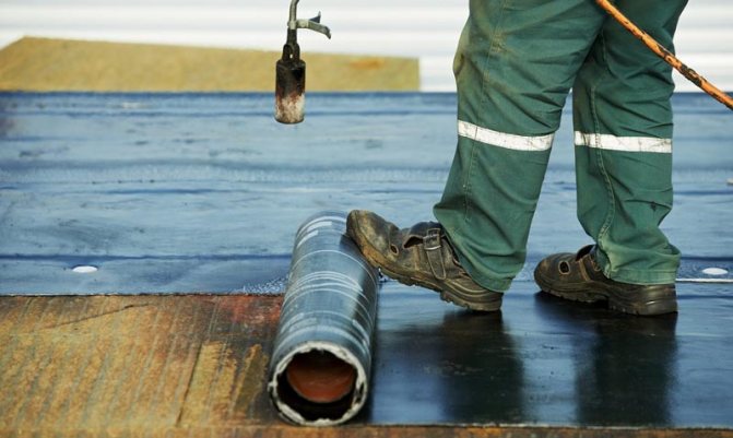 Когато слоят грунд е готов, можете да започнете да полагате хидроизолацията на ролката. Ако материалът е самозалепващ се килим, той просто се полага върху повърхността и се притиска към него. Работата с конвенционални ролкови материали ще изисква използването на пистолет с горещ въздух и горелка. С помощта на горелка материалът се нагрява отвън и бързо се притиска към пода. Особено добре е припокриването да се стопи и да се притисне добре.