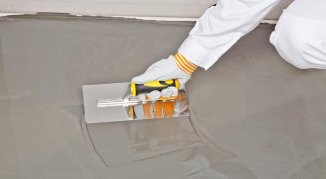 Подът се почиства от мръсотия, прах; за да се създаде по-добра адхезия, той трябва да се грундира. Закупената смес се разрежда с обикновена вода и внимателно се излива върху повърхността.Обработката с иглена ролка ще предотврати образуването на мехурчета вътре в слоя, ще осигури висококачествена изолация със собствените си ръце.