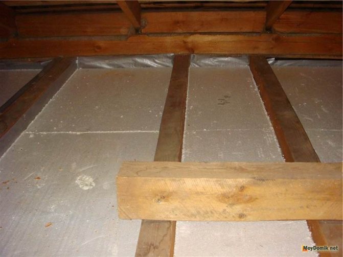 - Покритият с фолио материал ще увеличи устойчивостта на топлинни загуби. Но самият материал трябва да бъде положен с фолио.
