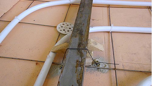 Това предполага, че замазката над тръбите трябва да бъде най-малко 45 mm. Когато се използва армировка като телена мрежа с отвори 100 x 100 mm и диаметър 3 mm, дебелината на замазката може да бъде намалена с 10 - 15 mm.