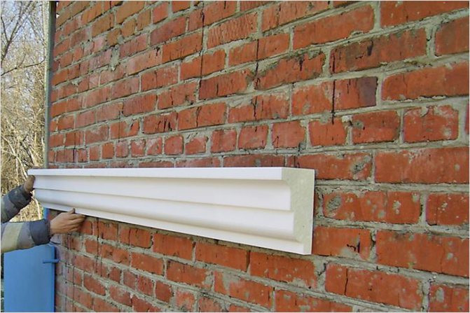 - Фасадният декор е монтиран от пяна пластмаса с помощта на специално лепило. Можете също да използвате устройства за закрепване или вградени части. Във всеки случай е наложително да нанесете лепило, тъй като ще осигурите по-плътно прилепване на декорациите към стената.