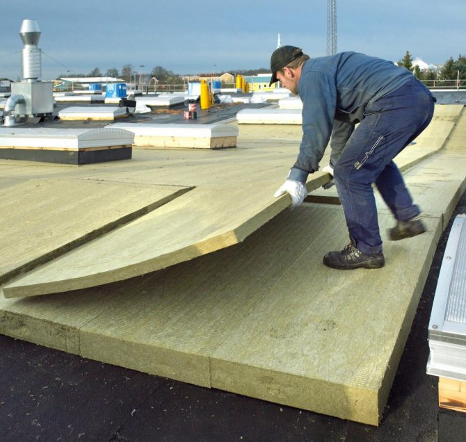 Минерална вата с висока плътност за изолация на стоманобетонни подове и метални покриви. Понякога се използва за изолиране на подове, които не са оборудвани с бетонна замазка. Плочите имат лек наклон, който е необходим за отвеждане на влагата в водосборните басейни, и са покрити с фибростъкло.