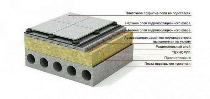 - топлоизолация от базалтови плочи "TECHNOROOF", "TECHNOROOF N30", "TECHNOROOF B60", "TECHNOROOF 45" или екструдиран пенополистирол TECHNONICOL XPS CARBON;