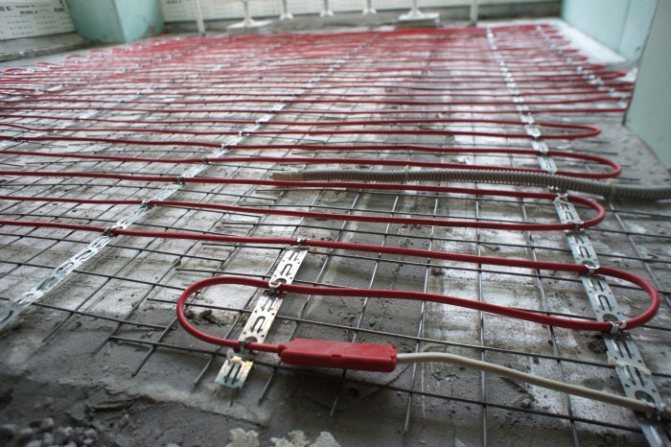Нагревателният елемент тук е проводник с високо съпротивление. Поради високата устойчивост сърцевината започва да се затопля и да отделя топлина на пода. Най-широко разпространен е двужилен кабел, чиито жила са свързани в единия край. Кабелът има външна изолация и метална оплетка (щит).