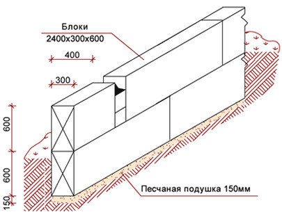 Фундамент от бетонен блок: пясъчна възглавница, блокове.