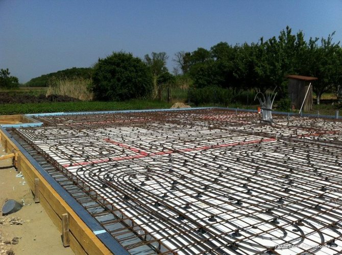 е подредено под слой топлоизолация, върху който лежи самата основа.