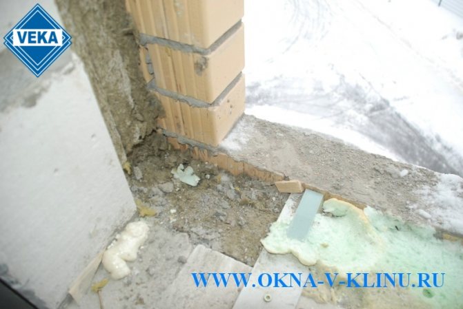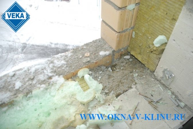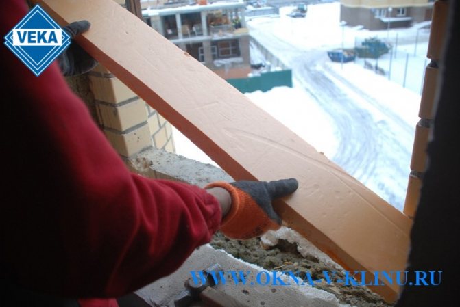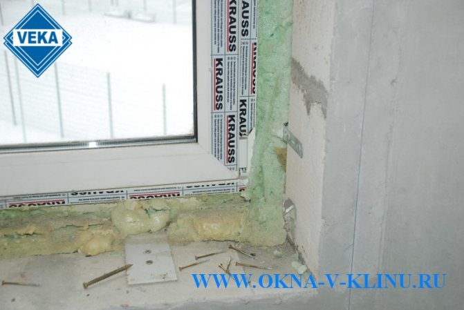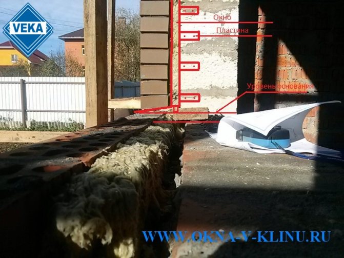 - Ако прозорецът е разположен в зоната с мека изолация, например каменна вата, тогава в долната част на отвора, под рамката, трябва да направите здрави и твърди опорни подложки. Това може да бъде тухлен водач или метални скоби, завинтени към стената.