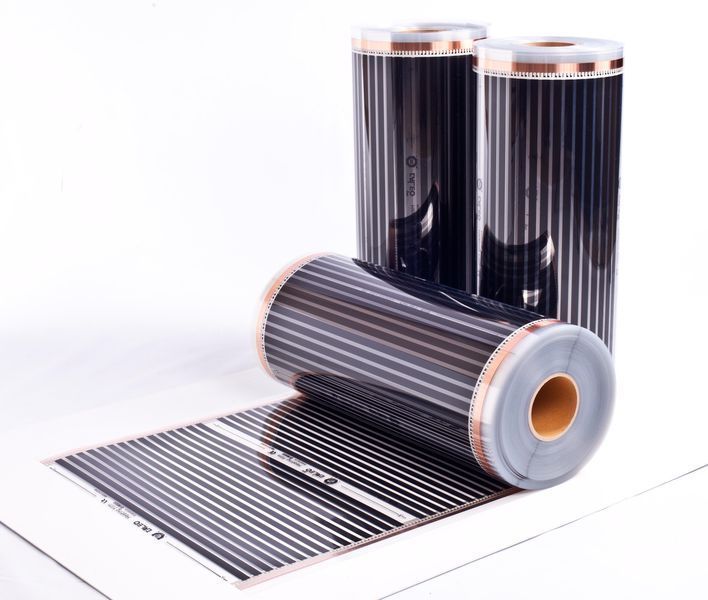 Носене на ток медни ленти (гуми) са разположени в двата края на ролката. Разнообразието от стандартни размери и маркиране на линиите за рязане ви позволява да изрежете филмовия материал точно на място без почти никакви загуби. Освен това, поради голямата си гъвкавост, еластичност и минимална дебелина (общо 0,338 мм) материалът прилепва идеално към всяка повърхност, без да изисква специална подготовка при монтиране на филмов топъл под. Тегло на един "квадрат" електрически нагревател 0,4 кг.