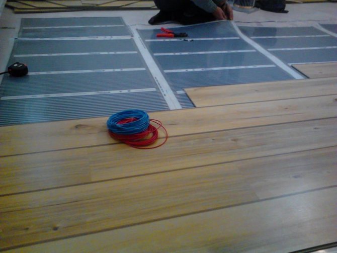 - при полагане на инфрачервено подово отопление под линолеум или килим, лентите от термофилм са защитени с шперплат.