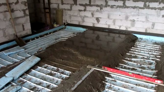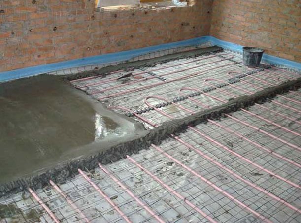 Когато се използва конвенционална изолация с височина 3-8 см, тръбите се разпределят върху монтажната решетка.