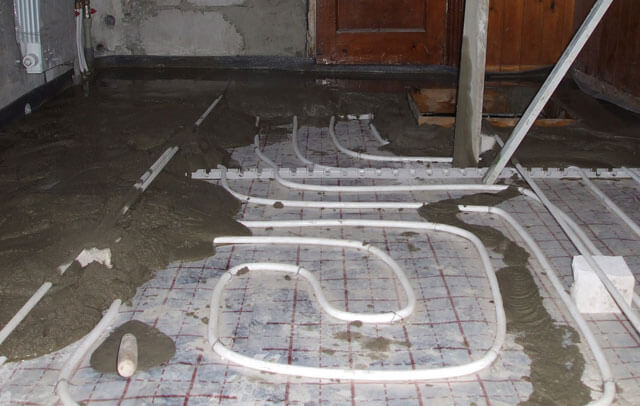 Подготвителната работа преди инсталирането на водния ТР включва почистване и изравняване на основната повърхност. За това подът се излива със слой бетонна замазка и се оставя да изсъхне напълно.