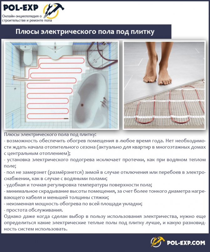 - Не е необходимо да се полагат скъпи електрически кабели, цената на използваните тръби, фитинги и оборудване е много по-ниска от цената на материалите за електрически подове;