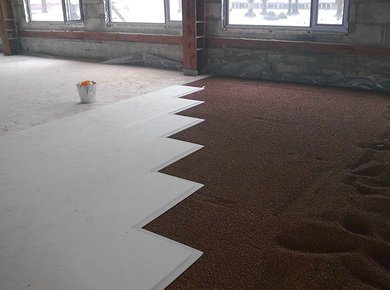 Върху грубата замазка се изсипва слой експандирана глина с дебелина най-малко 10 см