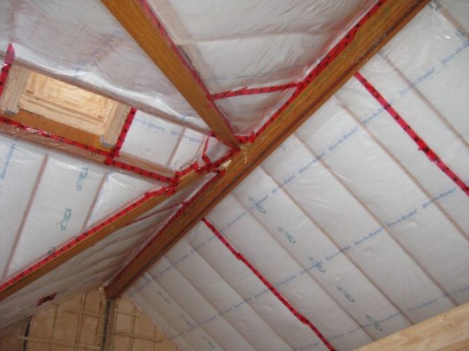 Ако използването на тавана не е планирано, тогава няма нужда от хидроизолационно устройство в горната част на изолационния слой. Прехвърля се в склоновете, където върши работата по защита на цялата покривна система от атмосферни води. Изолационният слой на пода също не се нуждае от вятърна защита, тъй като самата заграждаща конструкция предпазва от издухване на топлина от нейната дебелина.