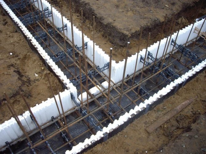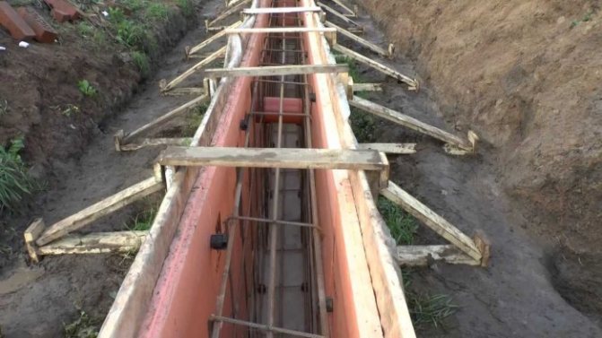 Основа от лентов тип се създава под стените по периметъра на сградата, предвижда мазе, може да бъде направена от бетонни блокове.