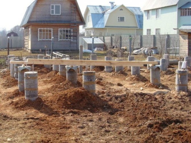 Този тип фундамент е оборудван със стълбове, които са вкопани под линията на замръзване с около 2 m.