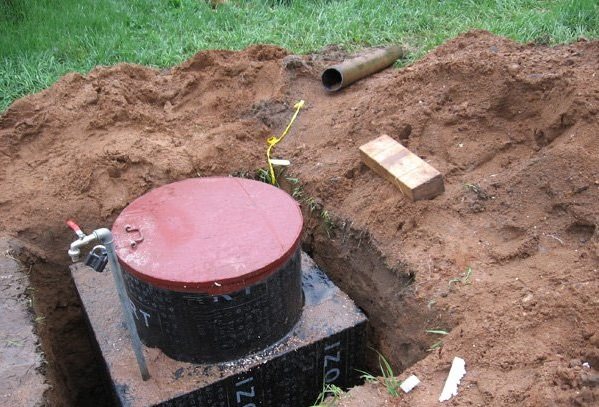 Изолация на кладенец с помощта на пластмасов кесон, монтиран в изкопана яма около корпуса на дълбочина 2,5 метра