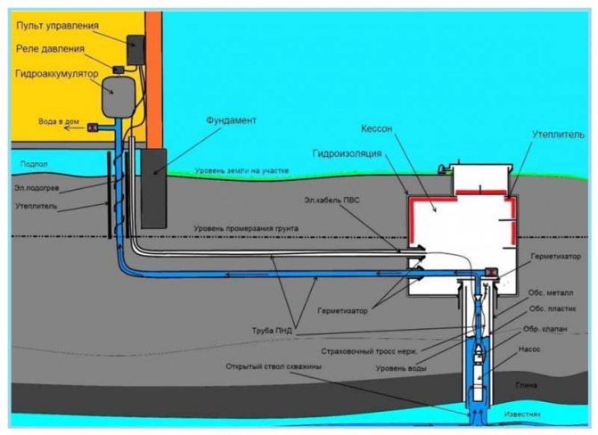 - Непрекъснатата работа на водоснабдителната система в частна къща през цялата година гарантира, че се поддържа оптималното вътрешно налягане, което ще предотврати стагнацията и замръзването на водата. През нощните периоди консумацията може значително да се намали или спре, което ще доведе до временно замръзване на водата. В този случай ще е необходимо да се изолират тръби и монтирани хидравлични устройства (помпа и акумулатор) с помощта на кесон.