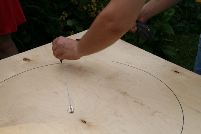 Първа стъпка. Вземете шперплат и изрежете чифт четни кръгове с диаметър, подобен на диаметъра на самата конструкция. Направете два отвора във всеки кръг - един за маркуча, а другият за вентилация.