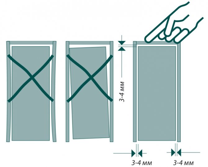 - Изрежете от шперплат със стандартен размер и MDF панели с желания размер. Те се вкарват в страничните U-образни ленти и се натискат в долния джоб, като се уверите, че листовете плътно и равномерно влизат в него.