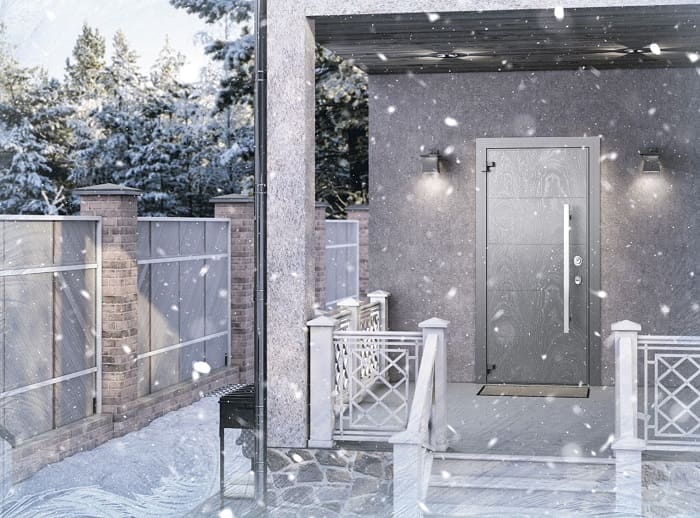 В частна къща прикрепеният отопляем или изолиран вестибюл спасява входната желязна врата от замръзване и заледяване. В райони със значителни минусови температури тази опция се счита за най-приемлива.