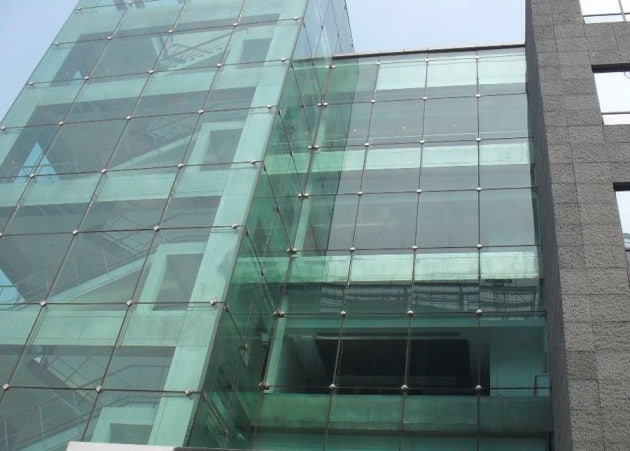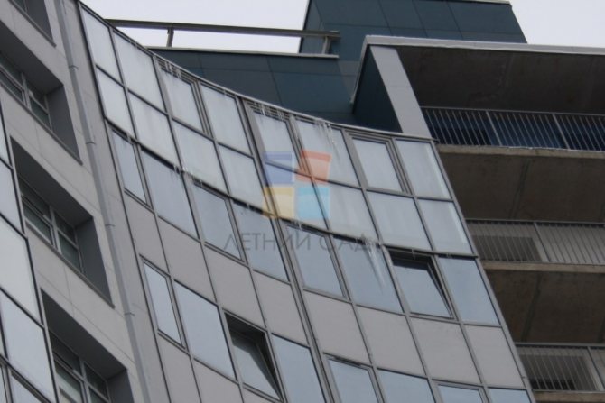 - Панорамното или структурно остъкляване е напълно оформена фасада на сградата. Поради наличието на рамката, те са осигурени не само с красив екстериор, но и с допълнително укрепване на стените.Тази технология се използва при работа върху сложни фасади, както и ако се изисква изолация на къщата, тъй като остава определено разстояние между рамката, облицовката и сградата, в която впоследствие се монтира изолацията. Този тип остъкляване е по-скъп от фалшив;