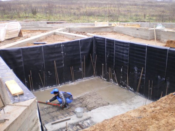 - повърхността на стената се почиства и върху нея се полага слой хидроизолация, в случай на използване на строителни панели Listar - няма да е необходимо да хидроизолирате стените, въпреки че за надеждност няма да е излишно.
