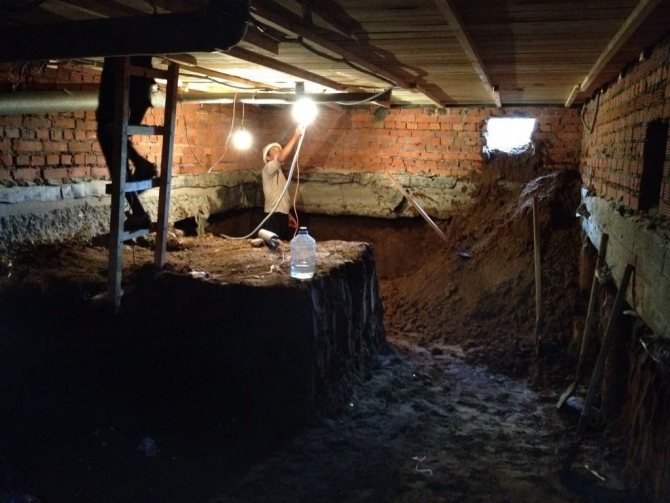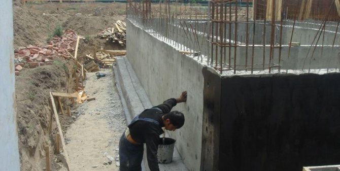 След фиксирането на дренажа е необходимо да се изкопае основата на къщата отвън. Вземат се мерки за хидроизолация на основата на сградата и в този случай е по-евтино да се изолира мазето отвън.
