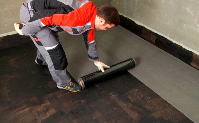 При всеки метод на изолация първо се полага хидроизолация.В това си качество е подходяща обикновена пластмасова обвивка. Съседните ленти се припокриват и фиксират с монтажна лента. Задължително се нуждаете от припокриване на стените. Височината му зависи от дебелината на тортата, включително замазката, ако има такава.