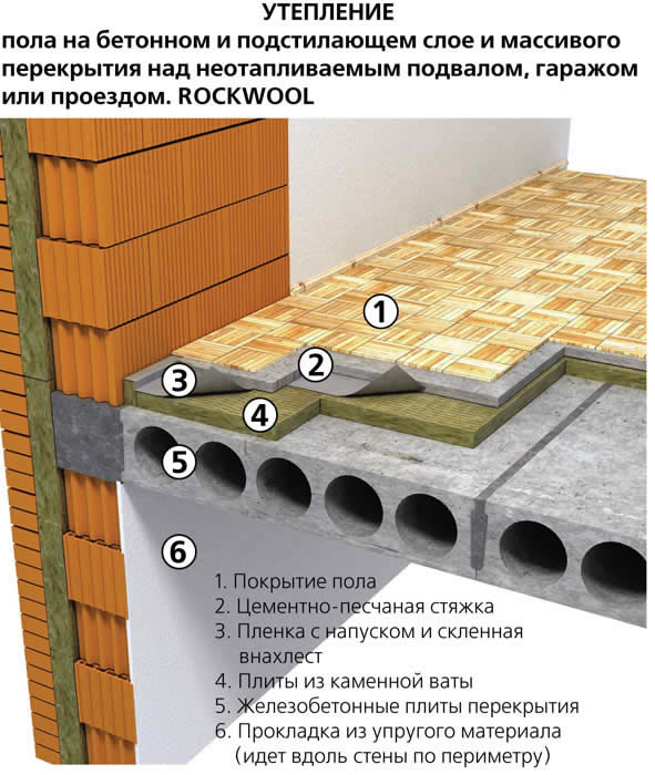 В крайна сметка има GOST 9561-91, който казва: Стоманобетонните подови плочи трябва да бъдат изолирани над пода, който разделя пода на първия етаж на сградата от неизолираната зона. Подобно изискване е посочено в SNiP 2.08.01-85
