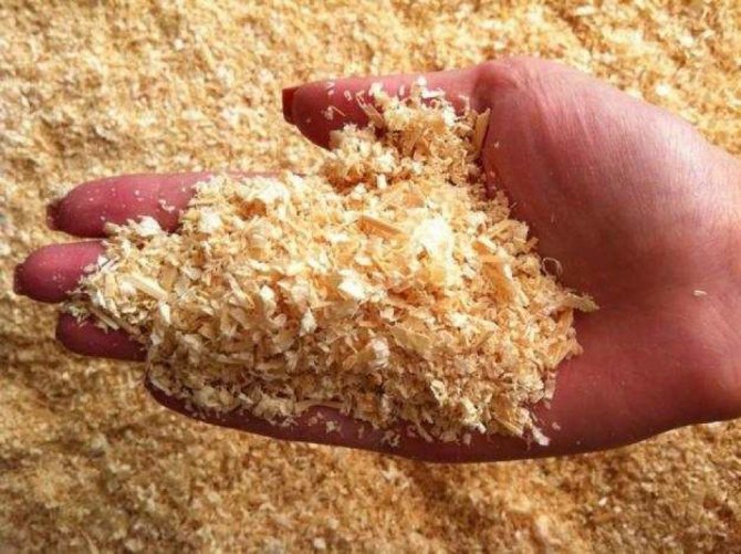 - Стърготини - пълнител. Препоръчително е да се използва продукт от преработка на иглолистен дървен материал, тъй като сместа с такъв пълнител се втвърдява по-бързо. Смърчовите стърготини са идеални.