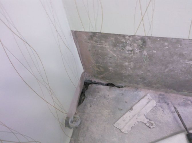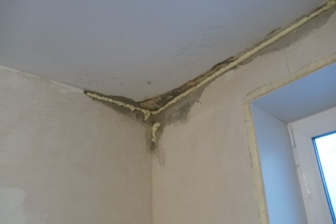 Важно! Не трябва да използвате монтажна пяна за запълване на пукнатини, тъй като тя абсорбира перфектно влагата, пропускайки излишната вода вътре в стаята.