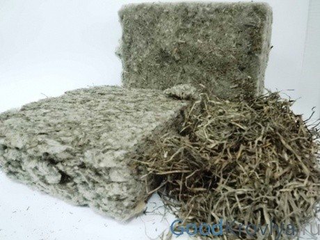- Висока топлопроводимост. Изолацията от водорасли принадлежи към топлоизолаторите със средна топлопроводимост (клас В). Това е доказано по време на тестове, проведени от Симферополската академия за екологично и курортно строителство към Катедрата по химия на строителни материали. В зависимост от определено ниво на влажност (16-24%) и плътност (80-90 кг), топлопроводимостта на материала е 0,087 W.За бетон, например, този показател е равен на един, минералната вата има подобен параметър. В този случай изметът е по-лек и от двамата.